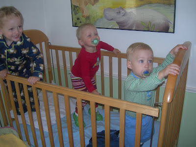 Three little monkeys - Jack, Davis, and Eli - jumping on the bed!